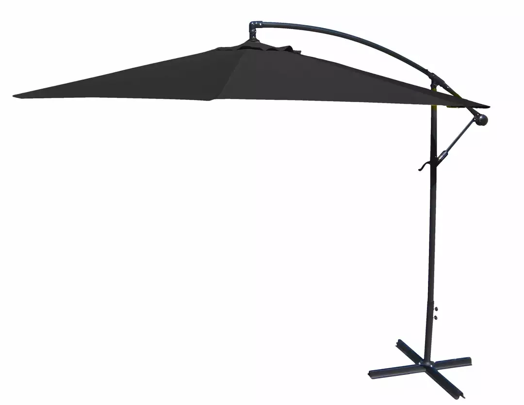 Enjoy time outdoors out of the sun with our attractive and colorful 10 foot steel offset umbrella. Made with Spun polyester fabric to prolong the life of your outdoor umbrella. Engineered to Resist Fading, Mildew & Stains. Item must be secured by umbrella base, with stone pavers, or bolted to a deck or patio. Recommend using 4 of the offset umbrella bases.