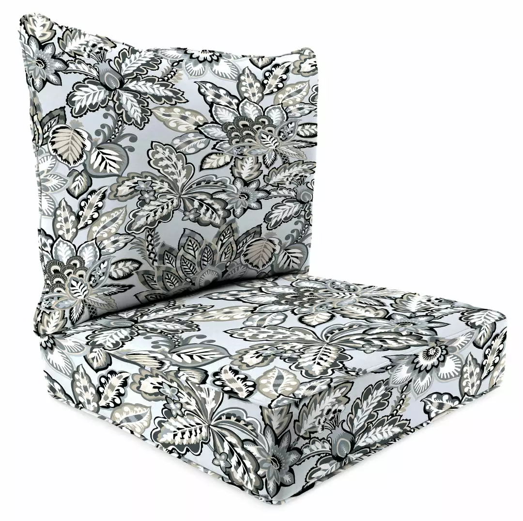 Refresh your outdoor seating arrangement with the comfort and style of this 2-Piece Outdoor Deep-Seat Chair Cushion Set from Jordan Manufacturing. Covered with a soft fabric and filled with high-density foam and fiber material, the deep-seat chair and back cushion are specially designed to keep you lounging comfortably on your favorite patio chair. Crafted from fade-, UV-, water- and stain-resistant fabric to withstand the elements and maintain the quality of your cushions over time Bringing a stylish look to help enhance your patio, deck, or pool area.