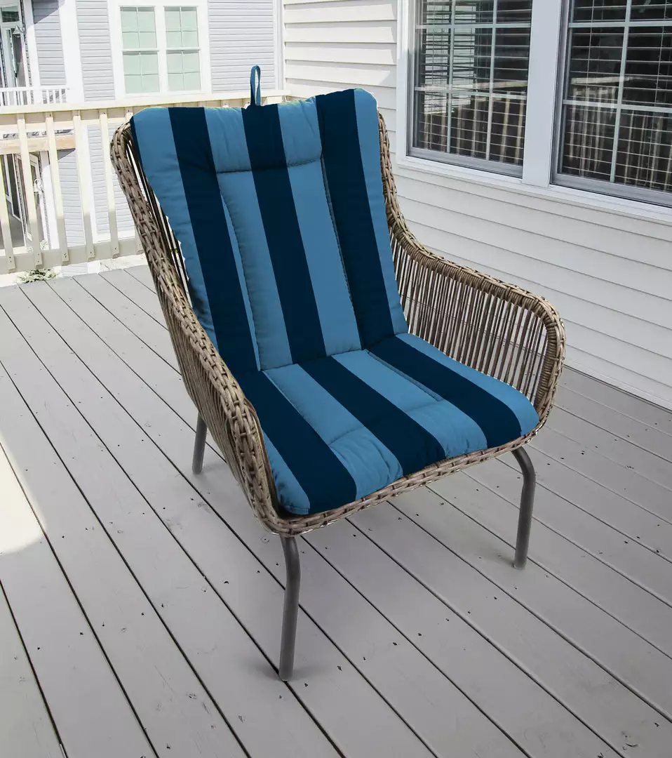 Revitalize your outdoor seating area with this knife-edge Euro style dining chair cushion from Jordan Manufacturing. Showcasing knife-edge detailing, this outdoor chair cushion will liven up any outdoor porch or aptio area. A matching set of ties secures this outdoor chair cushion for the right fit on your furniture while you sit, eat and relax. 100% polyester material makes for a high-performance fabric with its weather-, fade- and water-resistant qualities, making for the perfect piece to put outdoors.