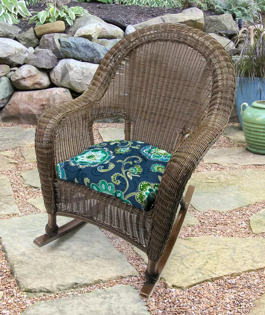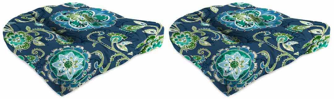 Outdoor Knife Edge Wicker seat cushion; Sold in Set of 2; UV protection allows cushion to withstand up to 500 hours of direct sunlight; Filled with dense hypoallergenic spun polyester fiber; Weather resistant polyester fabric that is engineered to withstand mold, mildew, & stains; Overall dimensions: 18Wx18Lx4H