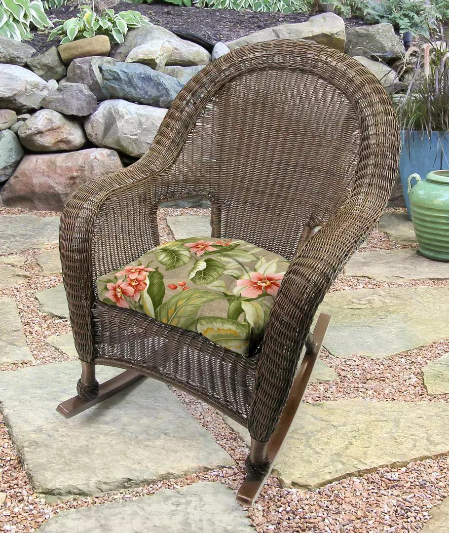 Outdoor Knife Edge Wicker seat cushion; Sold in Set of 2; UV protection allows cushion to withstand up to 500 hours of direct sunlight; Filled with dense hypoallergenic spun polyester fiber; Weather resistant polyester fabric that is engineered to withstand mold, mildew, & stains; Overall dimensions: 18Wx18Lx4H