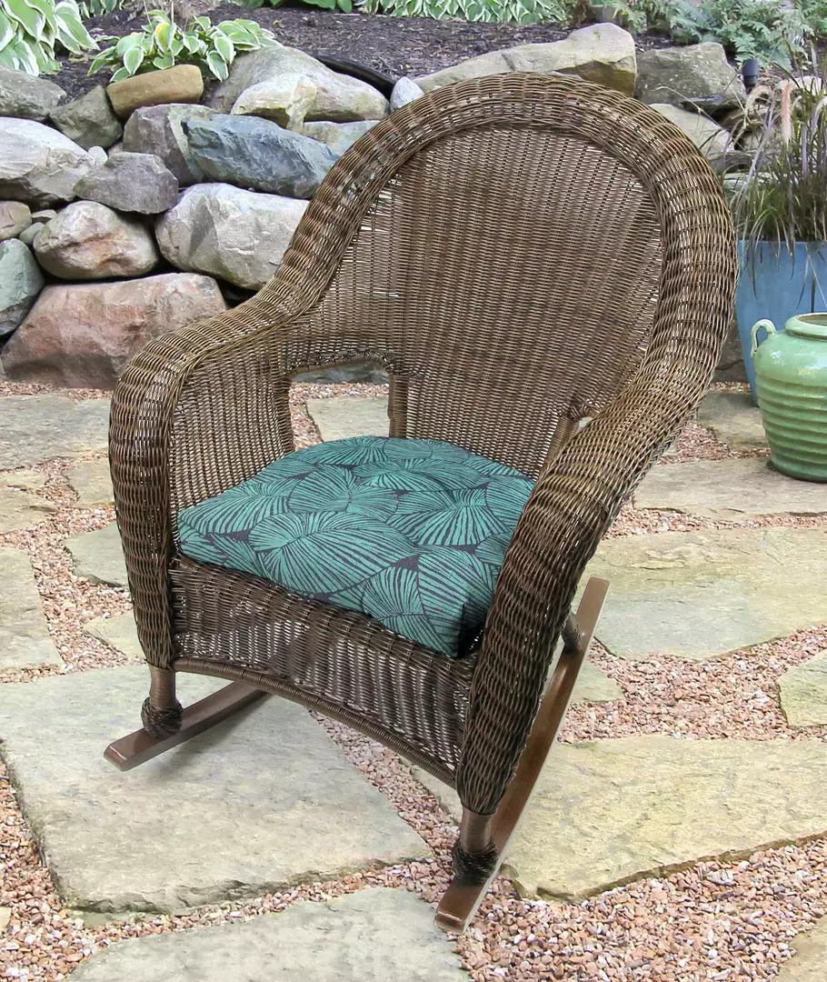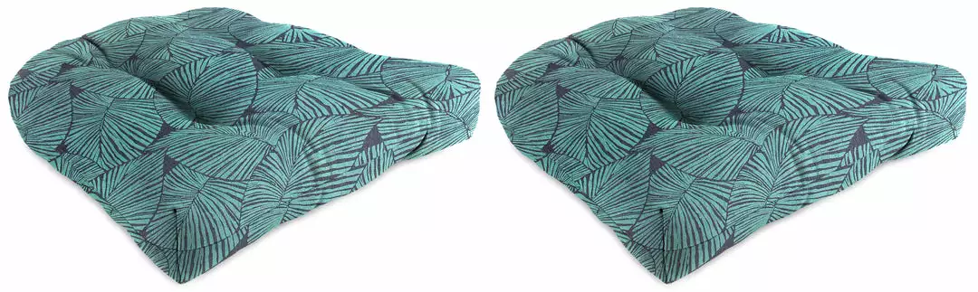 Outdoor Knife Edge Wicker seat cushion; Sold in Set of 2; UV protection allows cushion to withstand up to 500 hours of direct sunlight; Filled with dense hypoallergenic spun polyester fiber; Weather resistant polyester fabric that is engineered to withstand mold, mildew, & stains; Overall dimensions: 18Wx18Lx4H