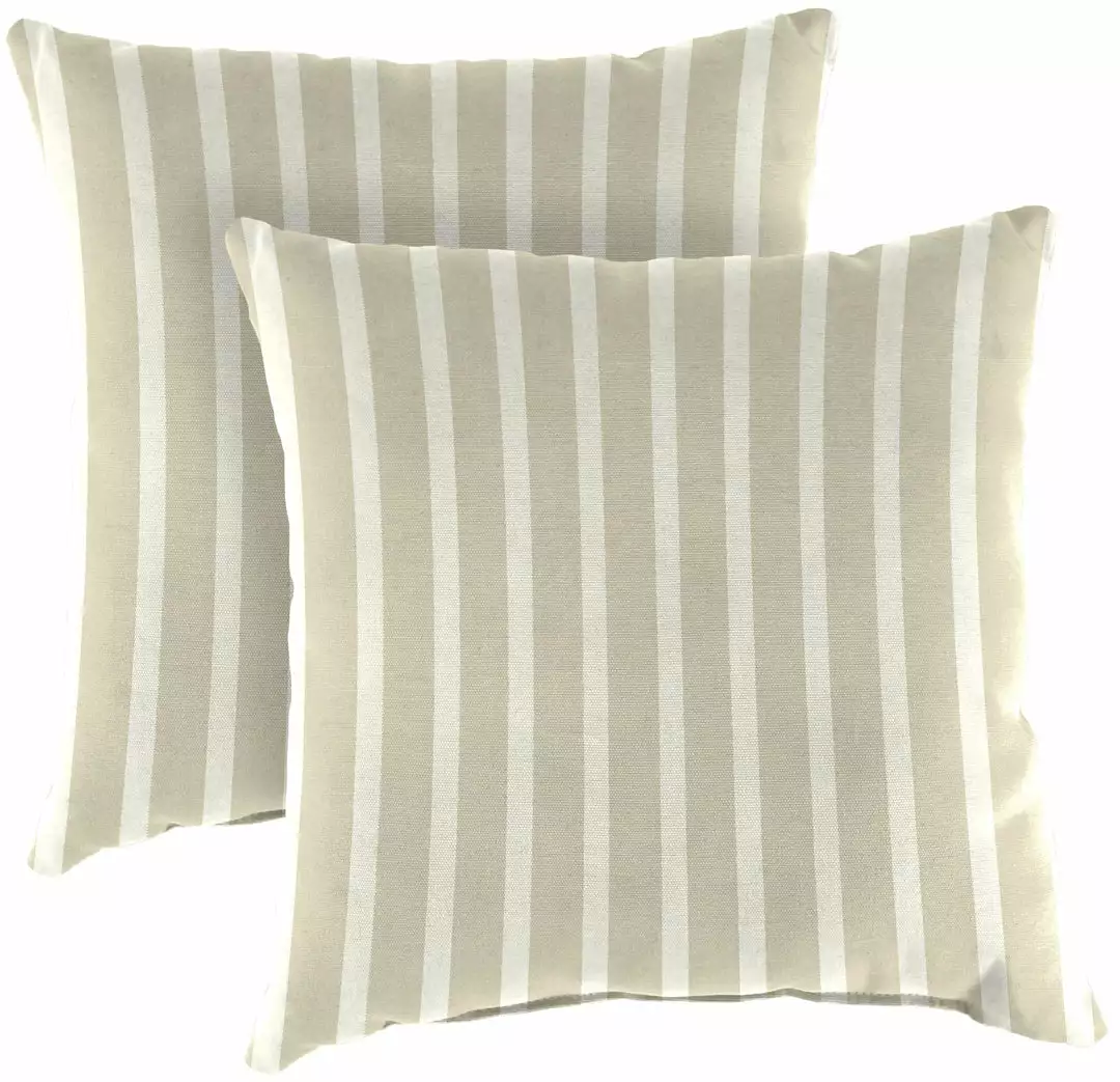 Outdoor Knife Edge 18″ Throw Pillows; Sold in Sets of 2; UV protection allows pillow to withstand up to 1000 hours of direct sunlight; Filled with dense hypoallergenic spun polyester fiber; Weather resistant Sunbrella acrylic fabric that is engineered to withstand mold, mildew, & stains; Overall dimensions: 18Wx18Lx5H