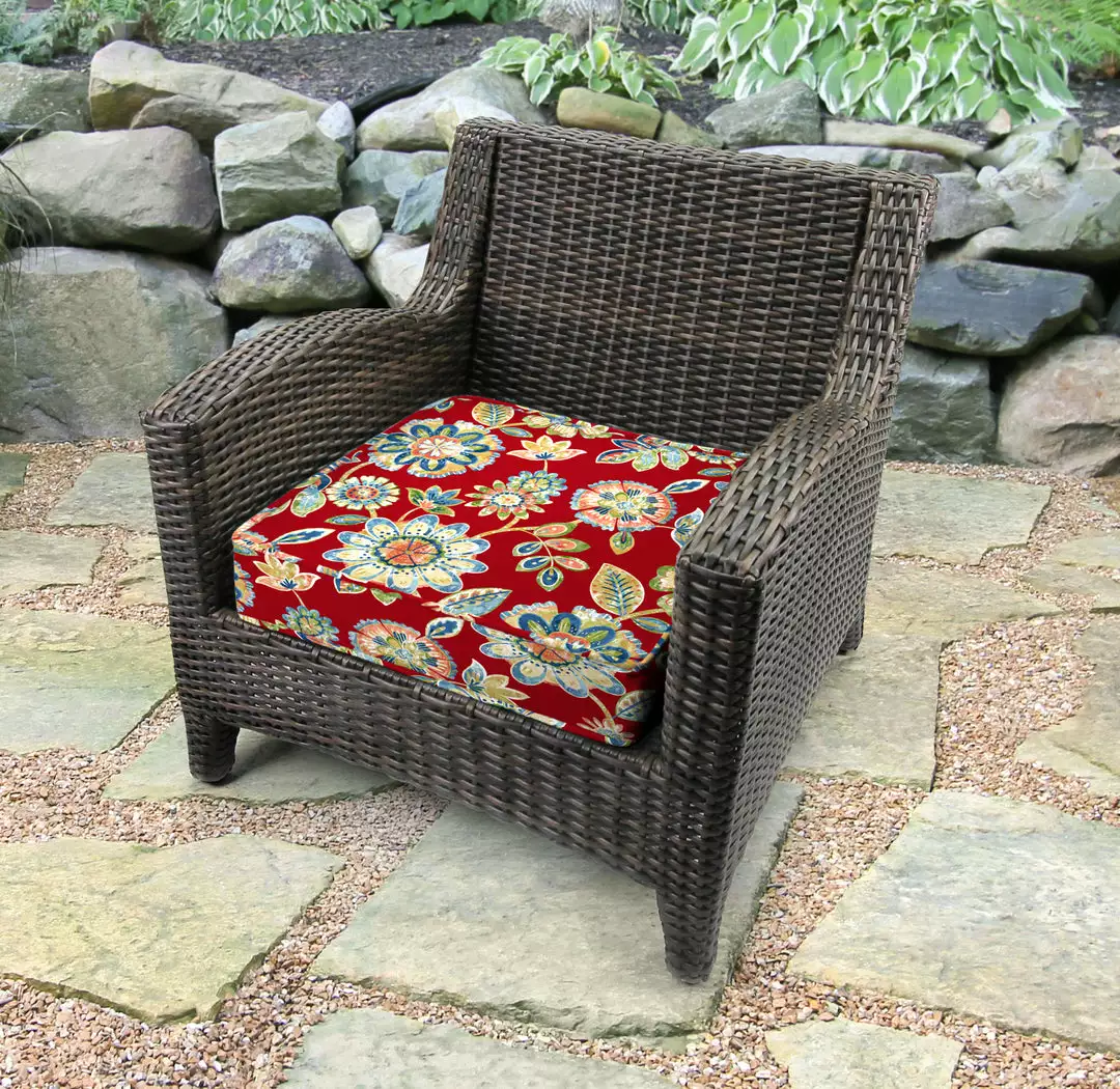 Refresh your outdoor seating arrangement with the comfort and style of this Boxed Edge Outdoor Deep Seat Cushion from Jordan Manufacturing. Covered with a soft fabric and filled with high-density fiber material, the deep-seat cushion is specially designed to keep you lounging comfortably on your favorite patio chair. Crafted from fade-, UV-, water- and stain-resistant fabric to withstand the elements and maintain the quality of your cushions over time Bringing a stylish look to help enhance your patio, deck, or pool area.
