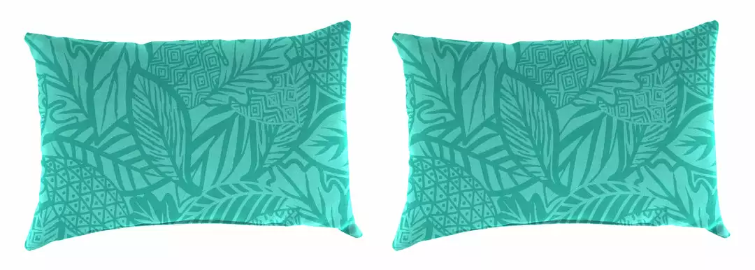 Add a touch of color to your outdoor seating area with this set of 2 Outdoor Lumbar Throw Pillows from Jordan Manufacturing. Crafted from a quick-drying, UV- and water-resistant fabric, these outdoor pillows withstand sun exposure and the elements to last for the seasons to come. Stuffed with hypoallergenic polyester fiber fill for an extra cushy and soft experience while relaxing. From elaborate dining spaces to cozy three-season porches, these fiber-filled throw pillows boosts your space with carefree, laid-back style and total comfort.