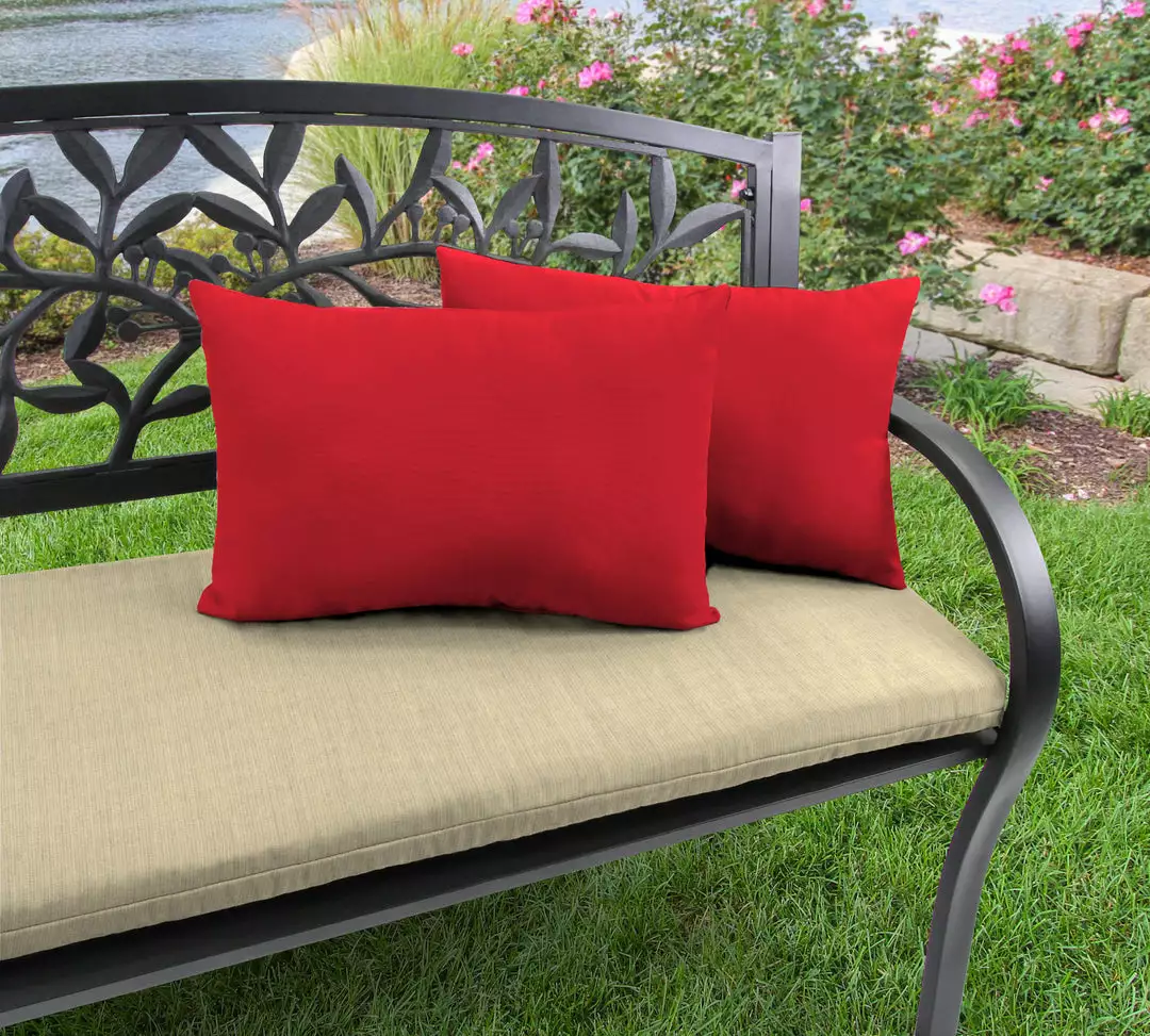 Add a touch of color to your outdoor seating area with this set of 2 Outdoor Lumbar Throw Pillows from Jordan Manufacturing. Crafted from a quick-drying, UV- and water-resistant fabric, these outdoor pillows withstand sun exposure and the elements to last for the seasons to come. Stuffed with hypoallergenic polyester fiber fill for an extra cushy and soft experience while relaxing. From elaborate dining spaces to cozy three-season porches, these fiber-filled throw pillows boosts your space with carefree, laid-back style and total comfort.