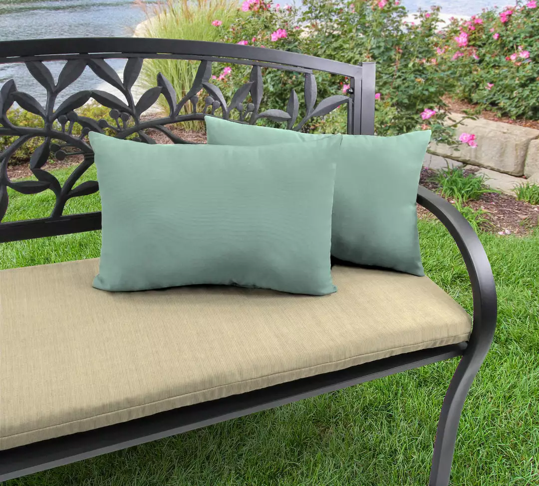 Add a touch of color to your outdoor seating area with this set of 2 Outdoor Lumbar Throw Pillows from Jordan Manufacturing. Crafted from a quick-drying, UV- and water-resistant fabric, these outdoor pillows withstand sun exposure and the elements to last for the seasons to come. Stuffed with hypoallergenic polyester fiber fill for an extra cushy and soft experience while relaxing. From elaborate dining spaces to cozy three-season porches, these fiber-filled throw pillows boosts your space with carefree, laid-back style and total comfort.