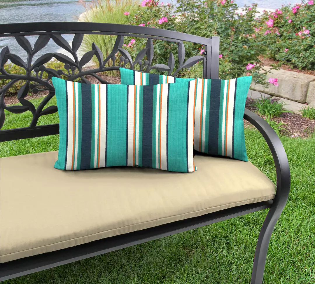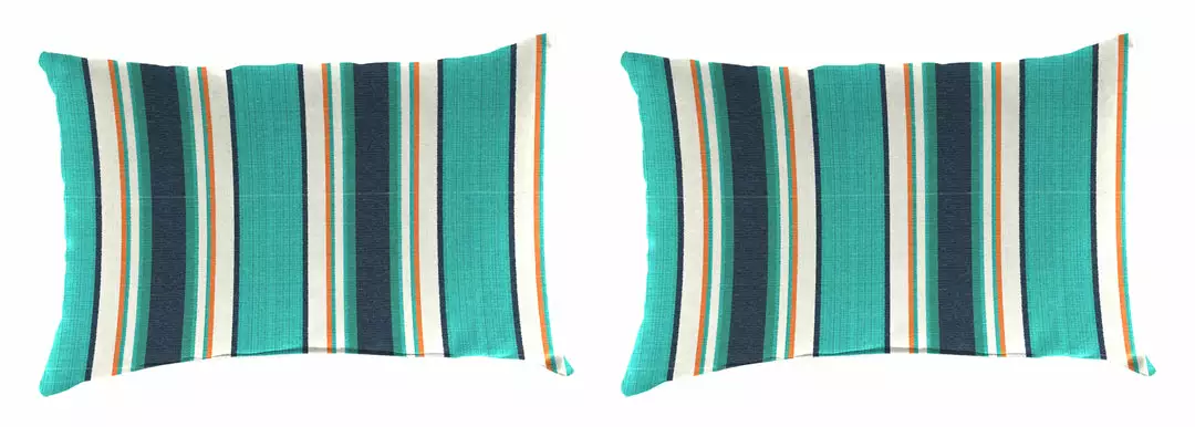 Outdoor Knife Edge Lumbar Throw Pillows; Sold in Sets of 2; UV protection allows pillow to withstand up to 1000 hours of direct sunlight; Filled with dense hypoallergenic spun polyester fiber; Weather resistant Sunbrella acrylic fabric that is engineered to withstand mold, mildew, & stains; Overall dimensions: 16Wx12Lx5H