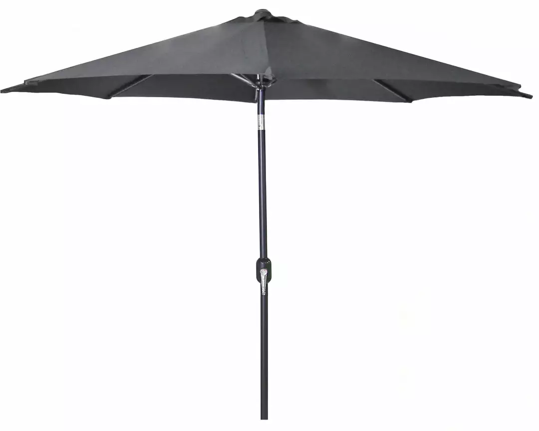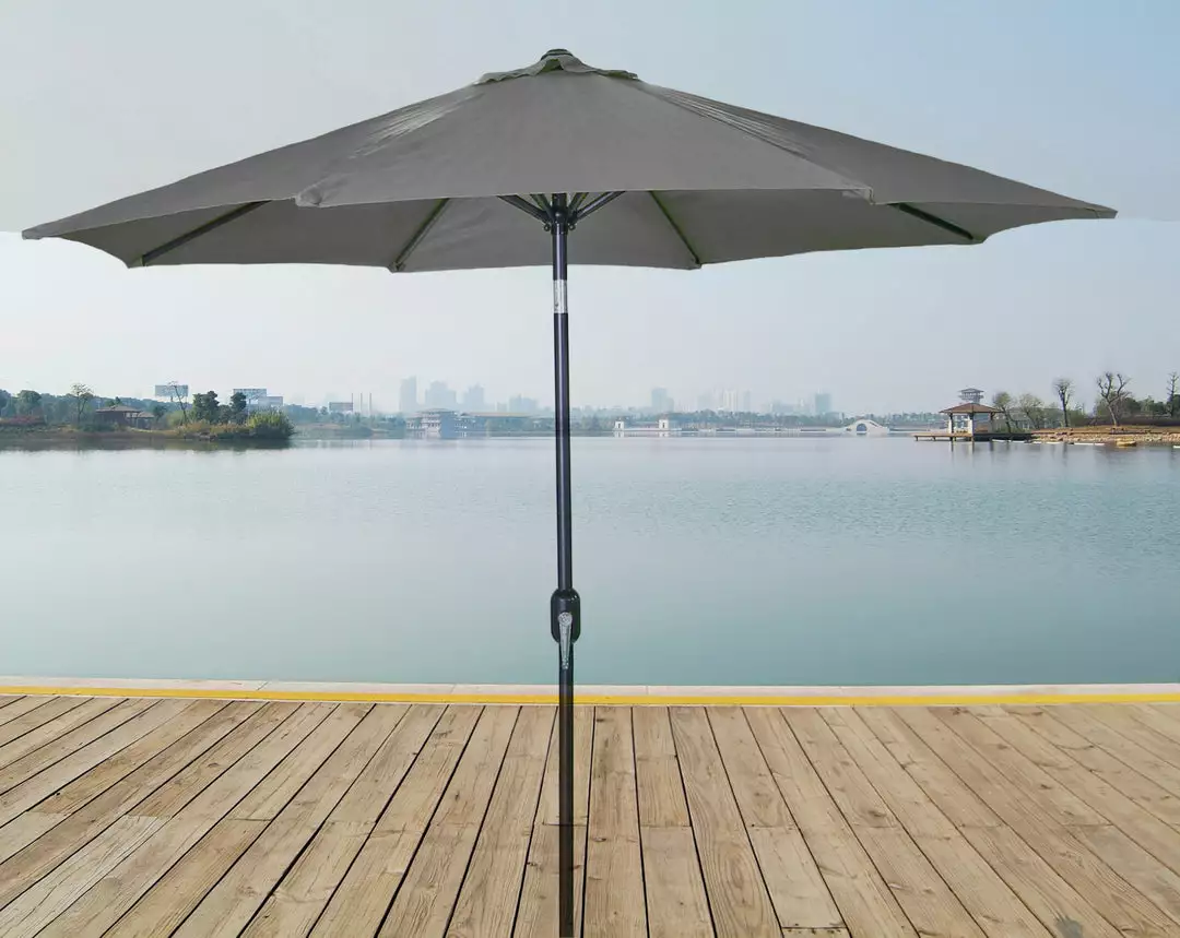 Enjoy time outdoors out of the sun with our attractive and colorful 9 foot steel market umbrella. Made with Spun polyester fabric to prolong the life of your outdoor umbrella. Engineered to Resist Fading, Mildew & Stains. Comes equipped with easy hand crank and can tilt up to 45 degrees.